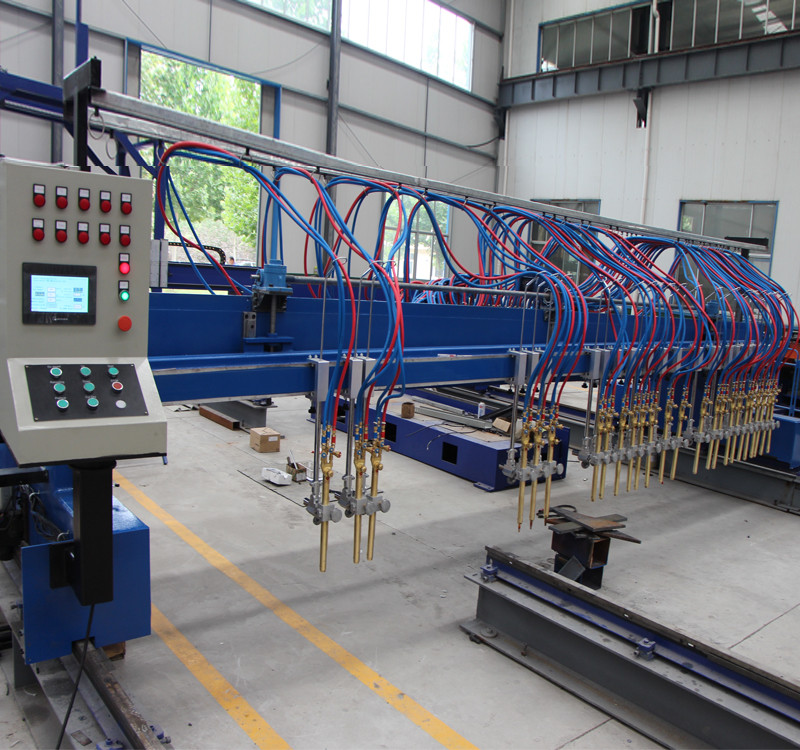 數(shù)控直條火焰切割機(jī)是一種利用氧、乙炔作切割燃料的高效率的氣體火焰切割設(shè)備。數(shù)控直條火焰切割機(jī)主要是利用多把火焰割炬將鋼板按切割要均勻的切割成一條條。如果要求切割異形工件,或者不規(guī)則圖形零件,則可以另外配備一把數(shù)控火焰割炬,這樣就既能切割直條,又能切割異形件??捎糜谠齑?,鋼結(jié)構(gòu),電力,鍋爐,機(jī)車(chē)車(chē)輛,石油化工等制造行業(yè)的高精度鋼板熱切割。